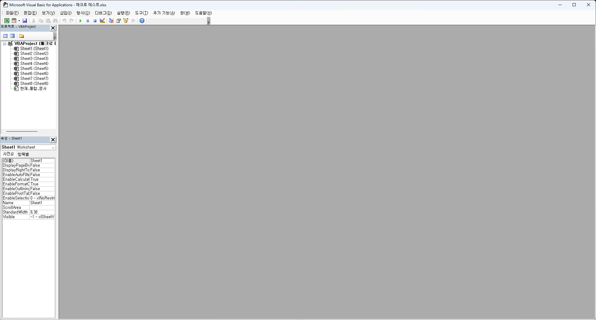 1. 엑셀에서 VBA 편집기를 엽니다. (Alt + F11)