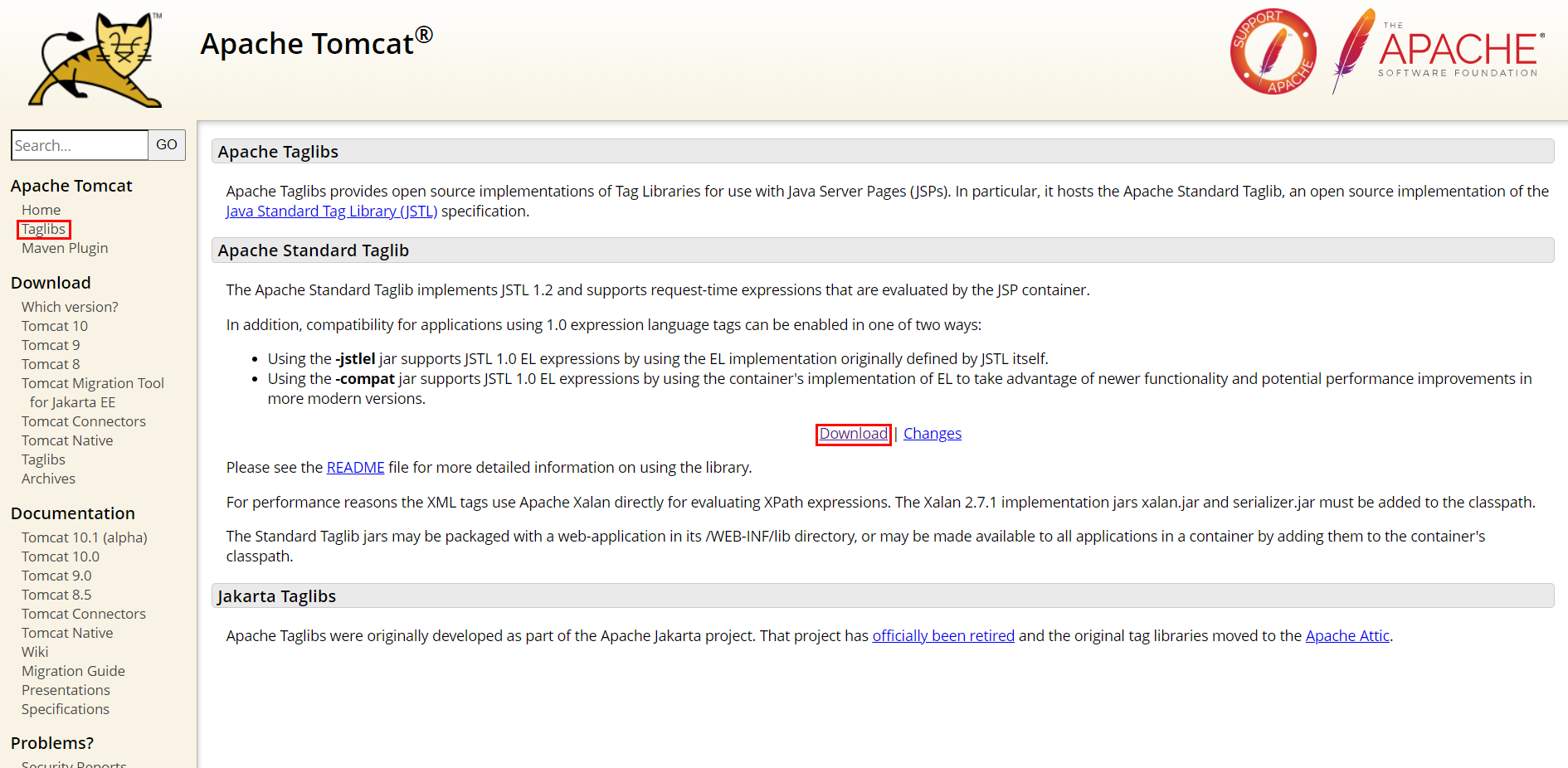 Apache Taglibs provides open source implementations of Tag Libraries for use with Java Server Pages (JSPs). In particular, it hosts the Apache Standard Taglib, an open source implementation of the Java Standard Tag Library (JSTL) specification. The Apache