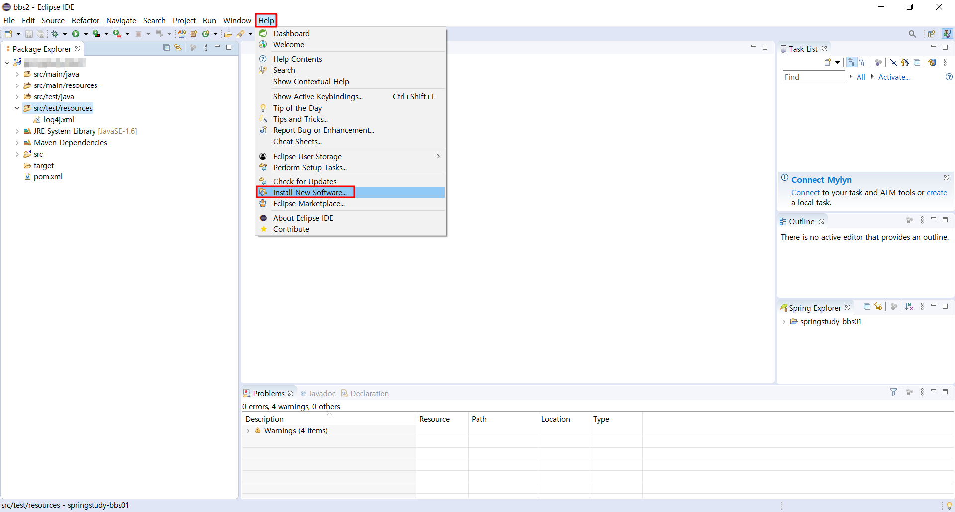Help => Install New Software...로 들어갑니다.