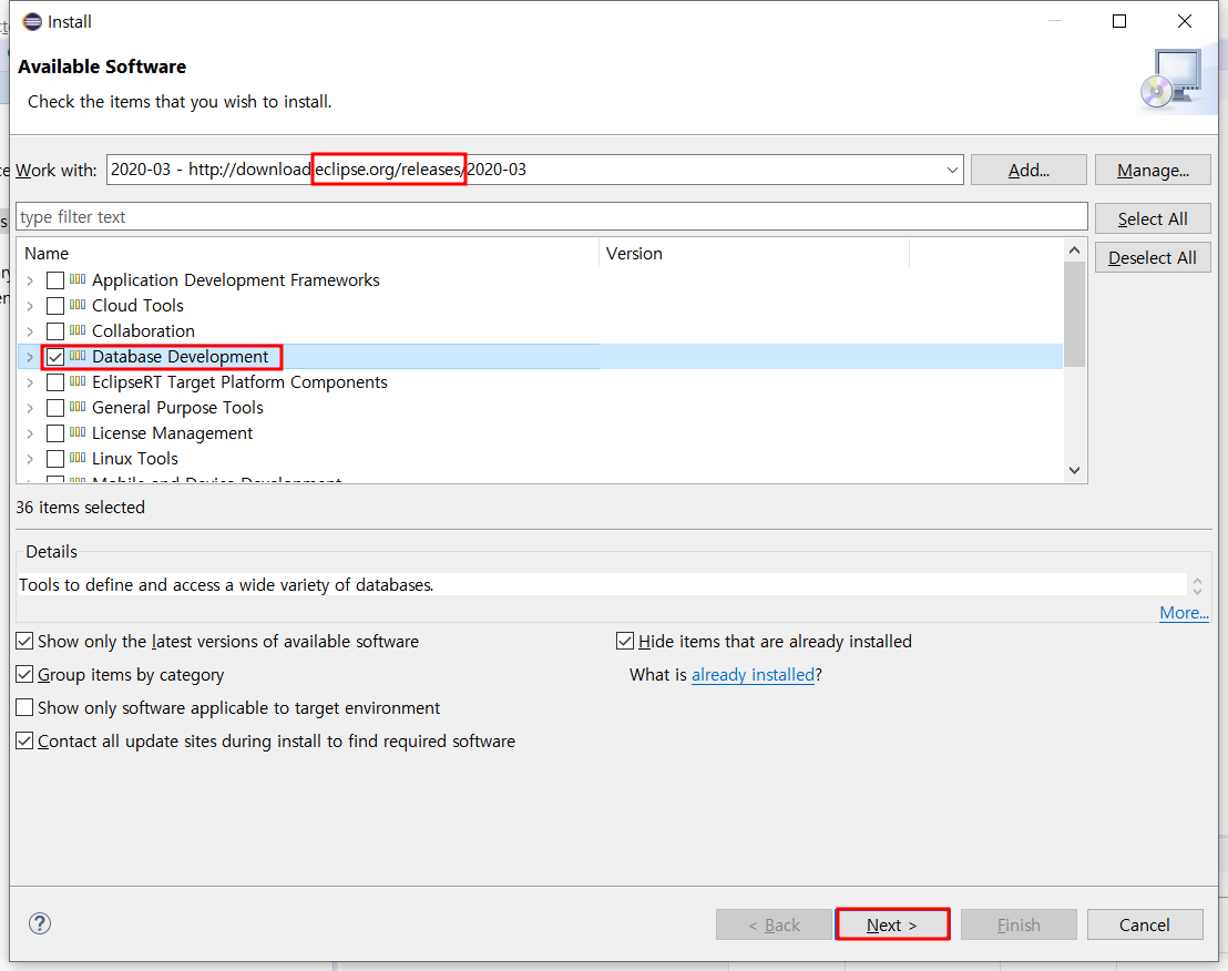 Database Development를 선택하고