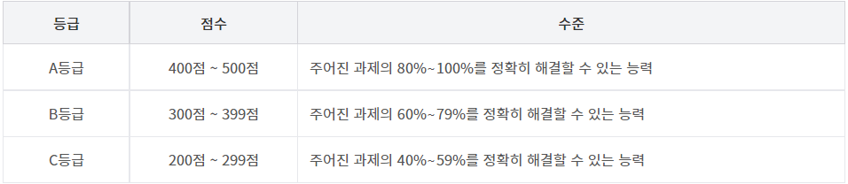 200~299점은 C등급