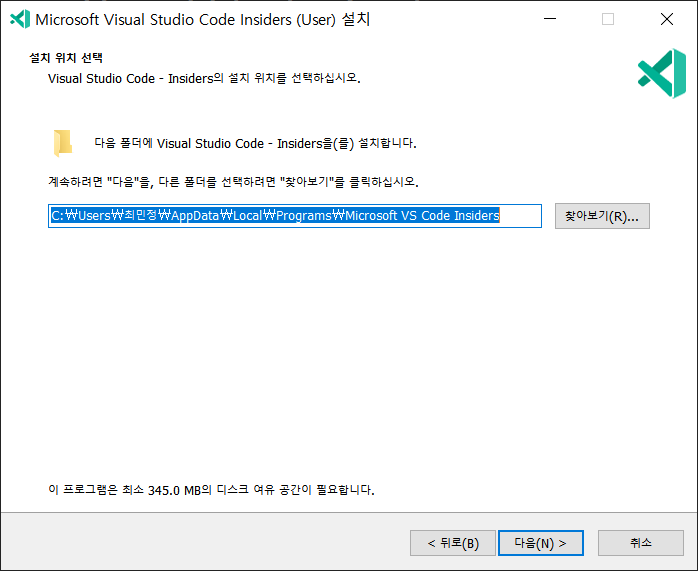 프로그램을 설치할 위치를 선택하여 줍니다.