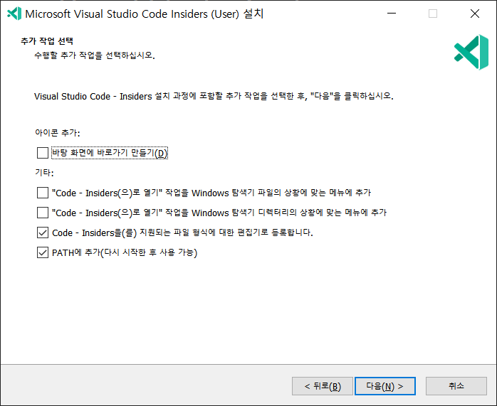 추가하고 싶은 작업을 선택하여 다음을 눌러줍니다.
