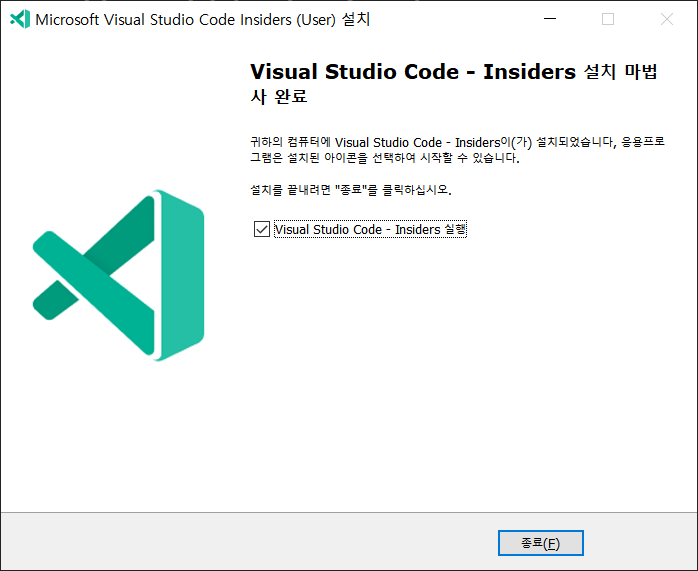 설치가 다 되었다는 안내 창이 나오면 종료를 눌러주시면 됩니다.