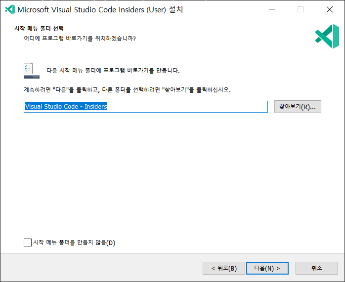 시작 폴더의 위치를 설정해줍니다.