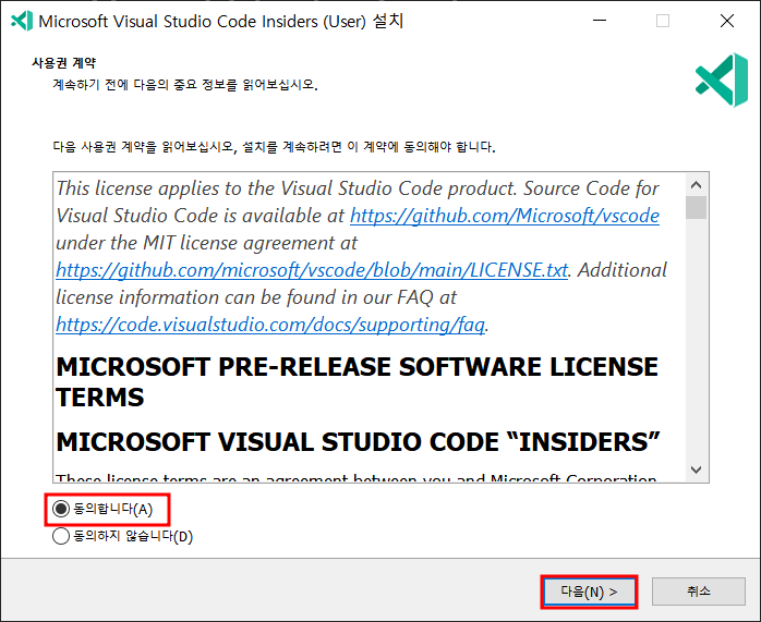 저는 기본값으로 두고 다음을 눌렀습니다.