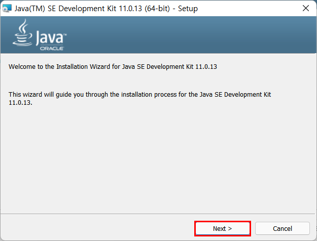 Java SE Development Kit용 설치 마법사 11.0.13입니다.