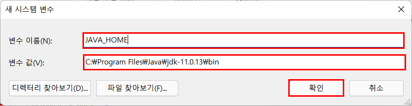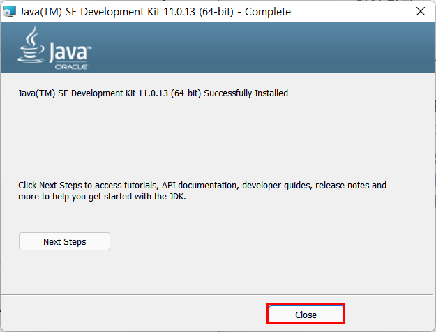 Java(TM) SE 개발 키트 11.0.13(64비트) 설치 완료