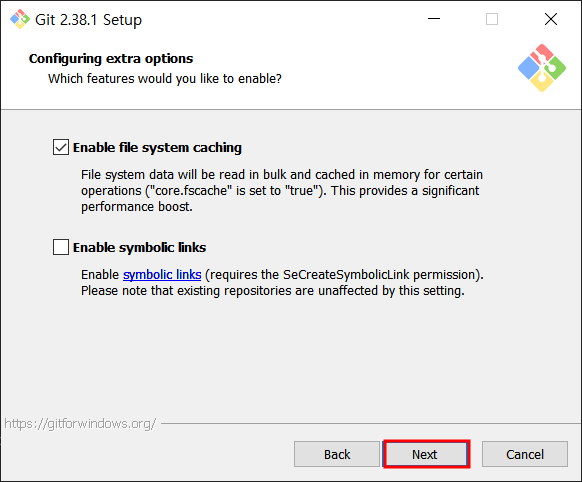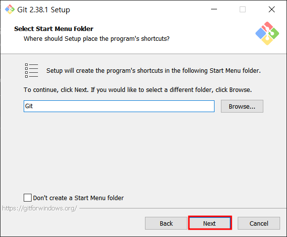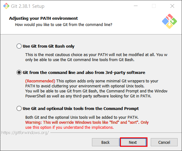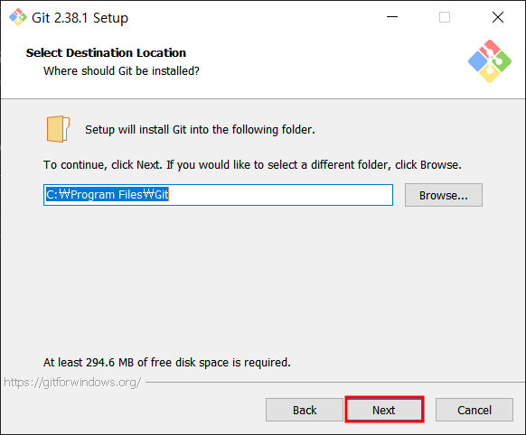 설치 프로그램에서 git을 다음 폴더에 설치합니다.