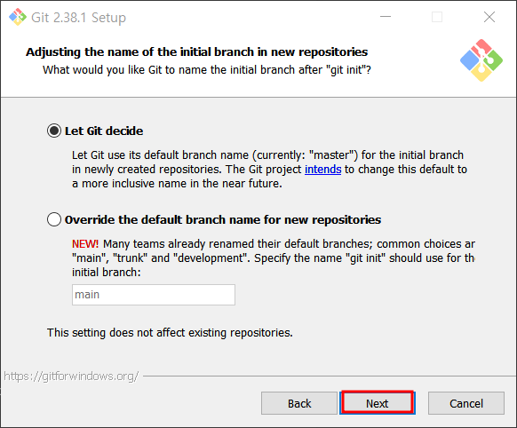 Checkout Windows-style, commit Unix-style line endings을 체크하고 Next를 눌러준다.