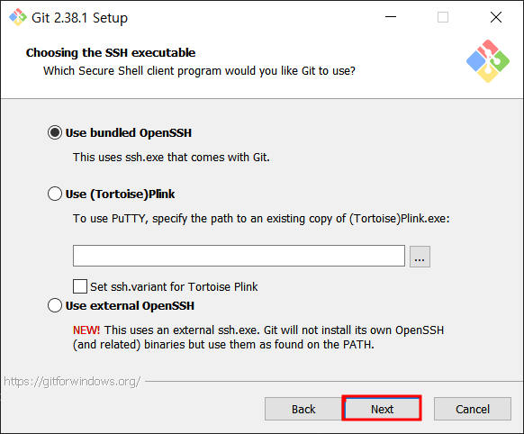 - 외부 ssh.exe를 사용하는 Git은 자체 OpenSSH