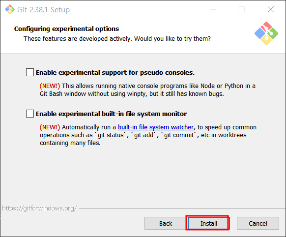 저는 아무것도 체크 안 하고 Install 눌렀어요.