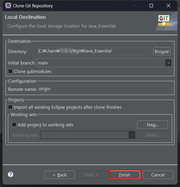 Finish를 눌러줍니다.