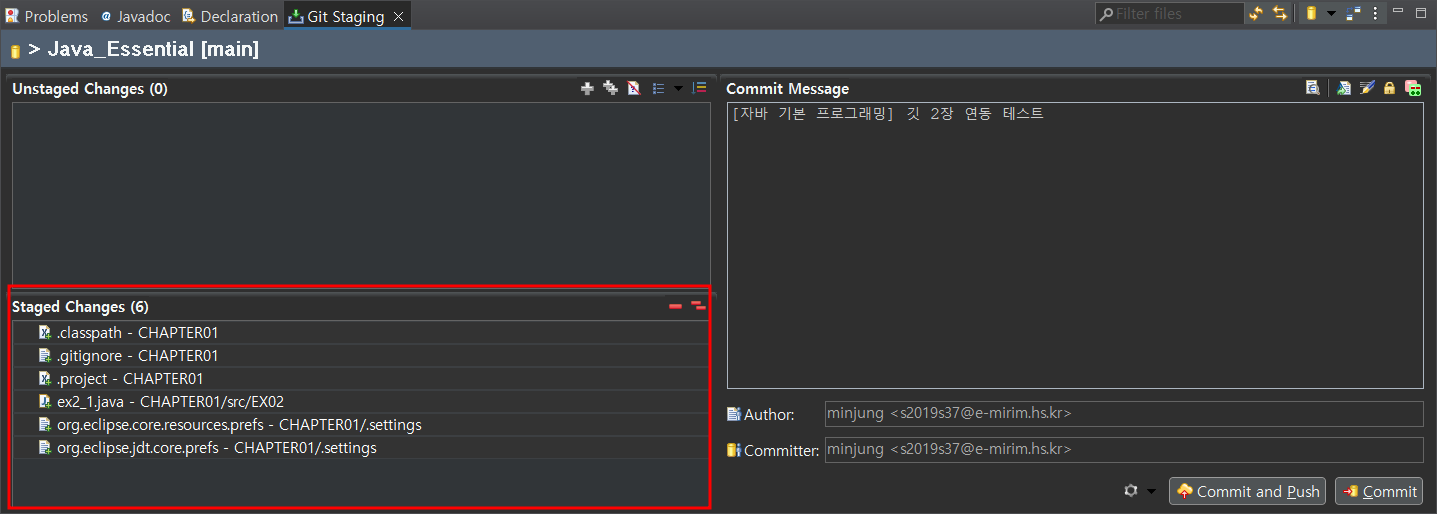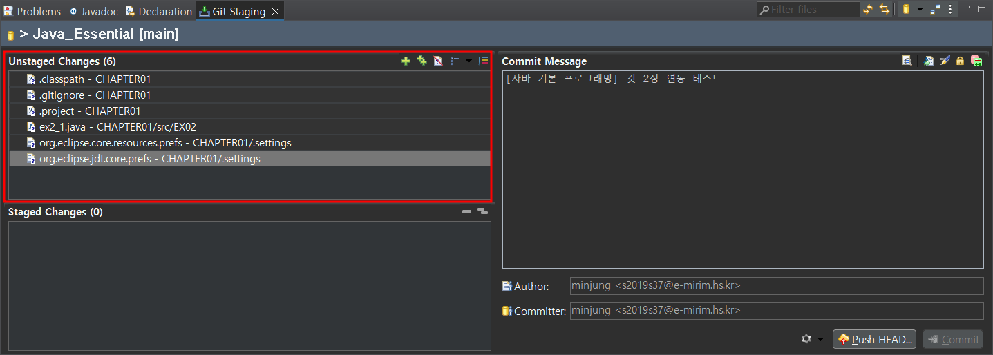 Unstaged Changes의 있는 모든 목록들을 드래그하여 Staged Changes에 끌어옵니다.