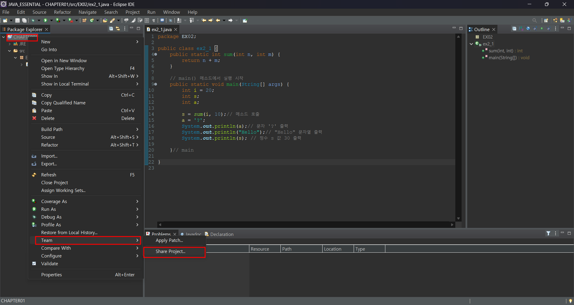 프로젝트에서 우클릭하여 Team에 Save Project...를 눌러줍니다.