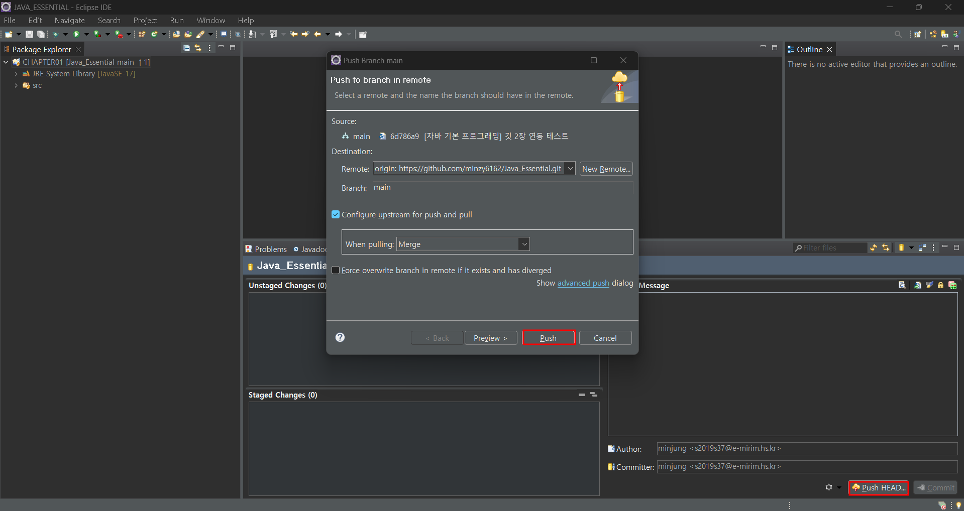 Push를 눌러줍니다.