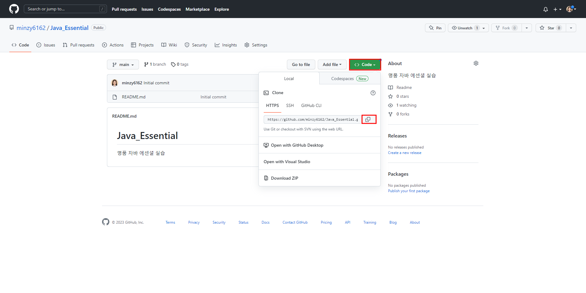 Github에 들어가서 푸시가 정상적으로 되었는지 확인해 줍니다.