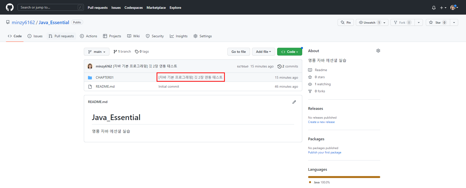 3. 리포지토리에 프로젝트 커밋 및 푸시