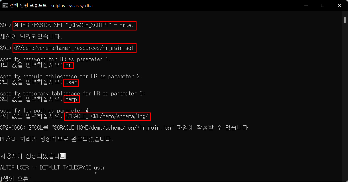 "사용자 'HR"(이)가 존재하지 않습니다."