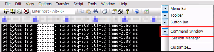 SecureCRT 화면에서 하단 바를 우클릭하고, Command Window를 활성화합니다.