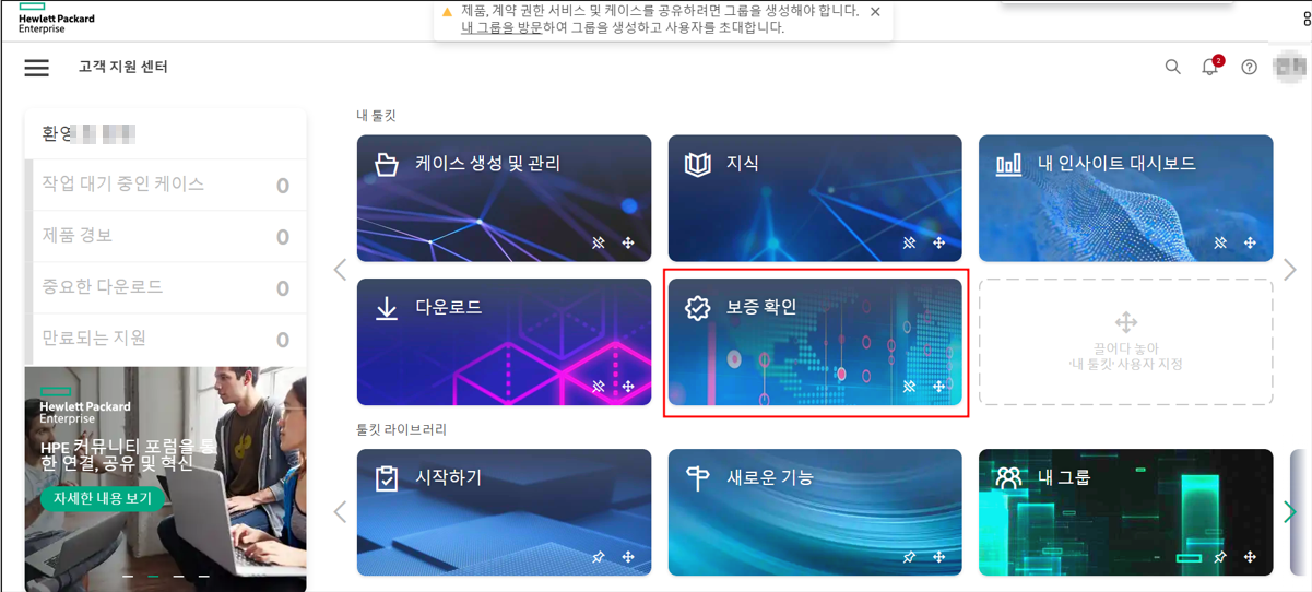 사이트 : https://support.hpe.com/connect/s/?cc=kr&lang=ko-kr&card=wc