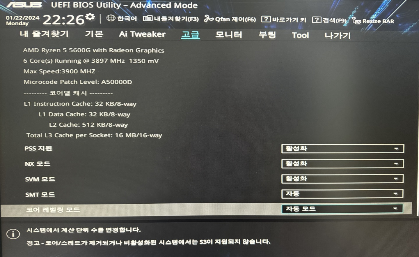CPU 제조사 마다 화면이 조금씩 다르기 때문에