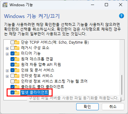 telnet이 없기 때문에 발생하는 에러로 Window에서 허용만 해주면 된다.